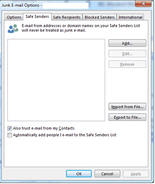 Using Outlook Safe And Blocked Senders Lists